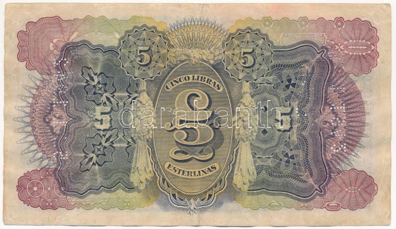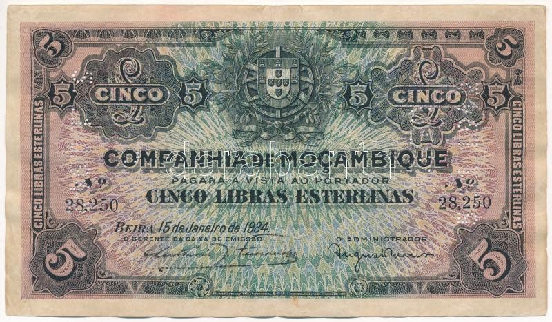 Mozambique 1934. 5 Libras with perforation C:F small tears, spot