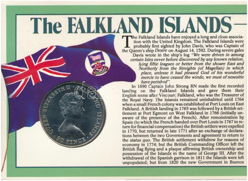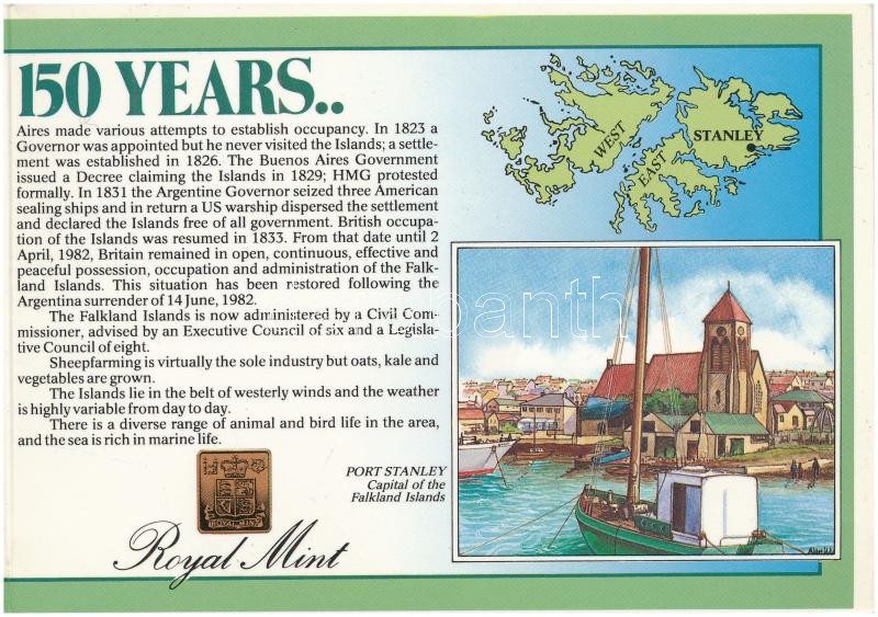 Leírás: Falkland-szigetek 1983. 50p Cu-Ni "150. évforduló" díszlapon T:BU