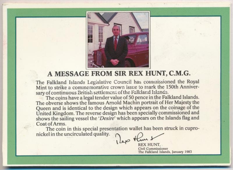 Falkland Islands 1983. 50 Pence Cu-Ni "150th anniversary" on cardboard C:BU