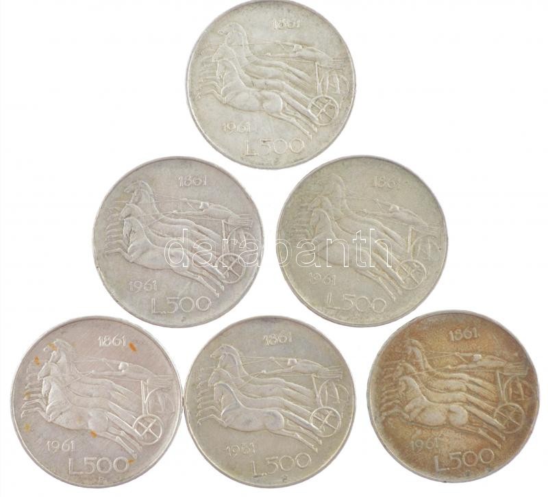 Leírás: Olaszország 1961. 500L Ag "Olasz egység századfordulója" (6x) T:2,2- Italy 1961. 500 Lire Ag "Italian Unification Centennial" (6x) C:XF,VF Krause KM#99