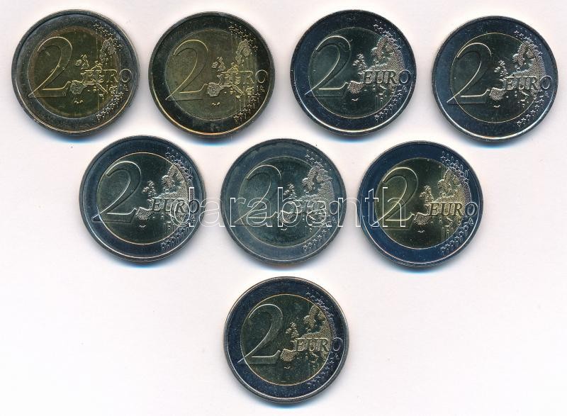 Mixed: 2011-2014. 2 Euro (8xdiff) with painting or multicolor inlay, within 5pcs circulating commemorative coins C:UNC-XF