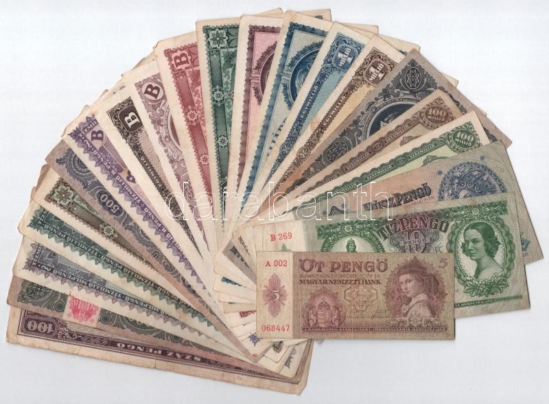 Leírás: 22db vegyes pengő bankjegy, közte 1946. 100.000.000BP + 10.000.000BP T:II-III