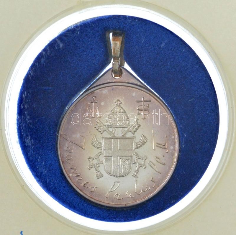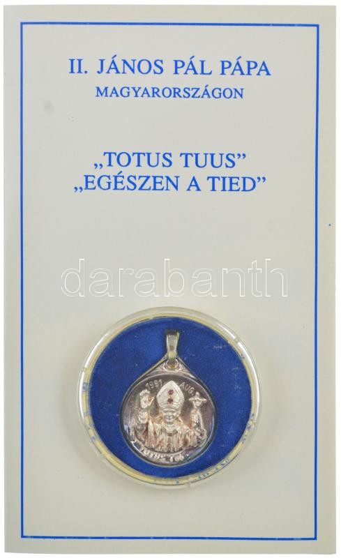 1991. "II. János Pál pápa Magyarországon" kétoldalas Ag emlékérem füllel, előlapján 2 db rubinnal díszítve, tanúsítvánnyal, eredeti díszkiadásban (0,999/~29mm) T:1- patina