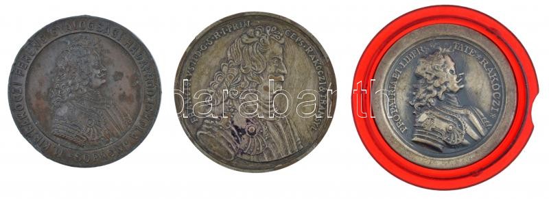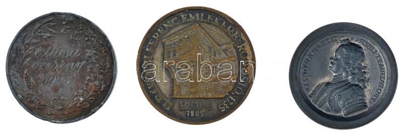 Bognár György (1944-) 1985. "MÉE Szécsény / II. Rákóczi Ferenc halálának 250. évfordulójára - Rodostó" ezüstpatinázott Br emlékérem (42,5mm) + 1943. "Öttusa Verseny 1943. I. / M. Kir. Rákóczi FerencGyalogsági Hadapród-Iskola - Sopron" ezüstözött bronz díjérem (40mm) + DN "Rákóczi Ferenc" emlékérem sérült műanyag tokban T:2-3