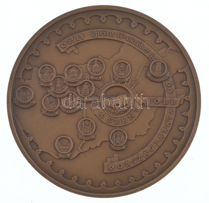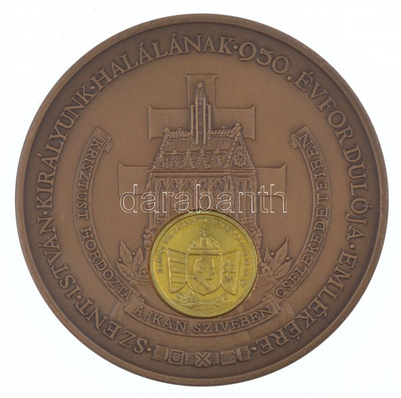 Bozó Gyula (1913-2004) 1988. "Szent Jobb országjárása / Szent István halálának 950. évfordulója" bronz emlékérem, aranyozott "II. János Pál pápa látogatása 1991. aug. 16-19" rátéttel (70mm) T:1- ph.