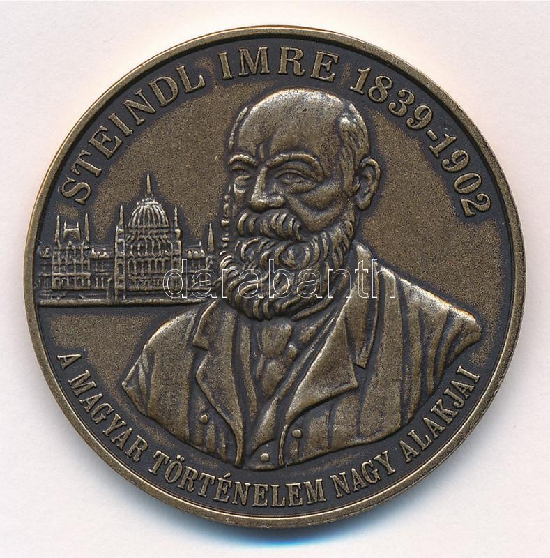 Leírás: Csóka Zsuzsa (1962-) 2002. "Steindl Imre 1839-1902 - A magyar történelem nagy alakjai" kétoldalas bronz emlékérem (42,5mm) T:1