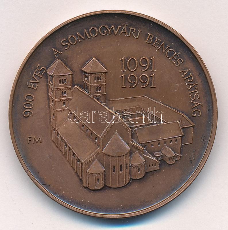 Leírás: Fritz Mihály (1947-) 1991. "Szent László a magyarok lovagkirálya / 900 éves a somogyvári Bencés Apátság 1091-1991" bronz emlékérem (42,5mm) T:1-