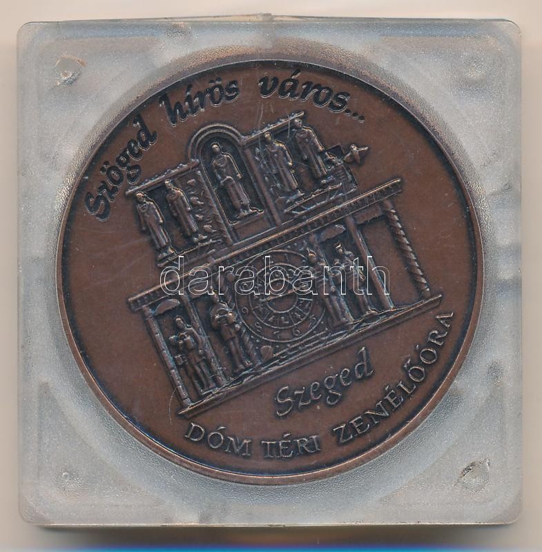 Fritz Mihály (1947-) 1998. "Eltörött a hegedűm... - Dankó Pista Emlékéért Alapítvány / Szöged hírös város...Szeged, Dóm téri zenélőóra" kétoldalas bronz emlékérem műanyag tokban (42,5mm) T:1,1- egy karc, a tok sérült