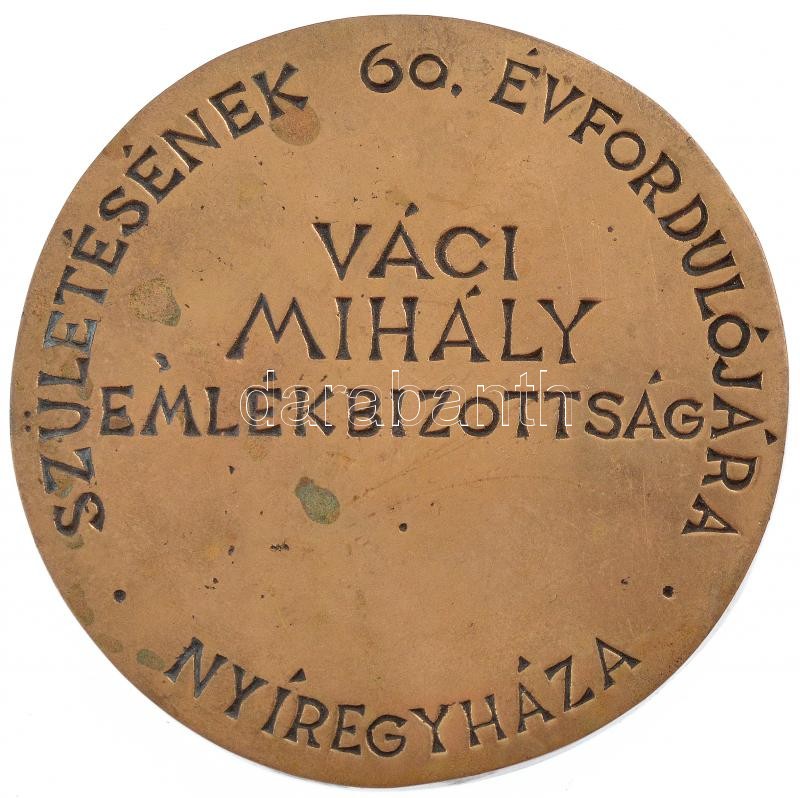 Leírás: Győrfi Sándor (1951-) 1984. "Váci Mihály Emlékbizottság - Születésének 60. évfordulójára - Nyíregyháza" kétoldalas bronz plakett (80mm) T:1- patina