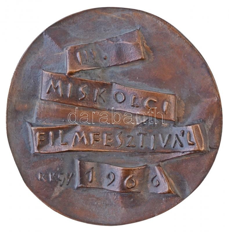 Leírás: Kiss Kovács Gyula (1922-1984) 1966. "III. Miskolci Filmfesztivál 1966" kétoldalas, öntött Br emlékérem (97mm) T:2