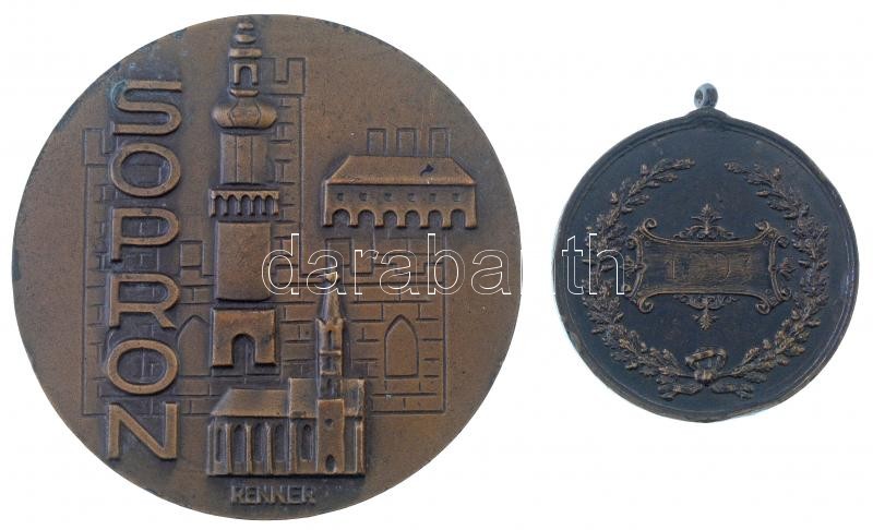 Renner Kálmán (1927-1994) 1977. "Sopron 1277-1977" kétoldalas bronz emlékérem (60mm) + 1897. "A soproni M. Kir. Állami Főreáliskola Tornaversenye" kétoldalas bronz díjérem füllel (36mm) T:2,2- patina, ph, karc