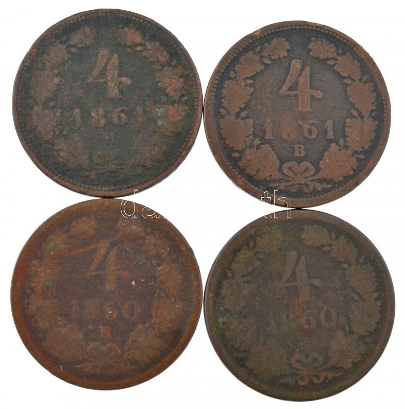 Leírás: 1860B 4kr Cu (2x) + 1861B 4kr Cu (2x) T:3