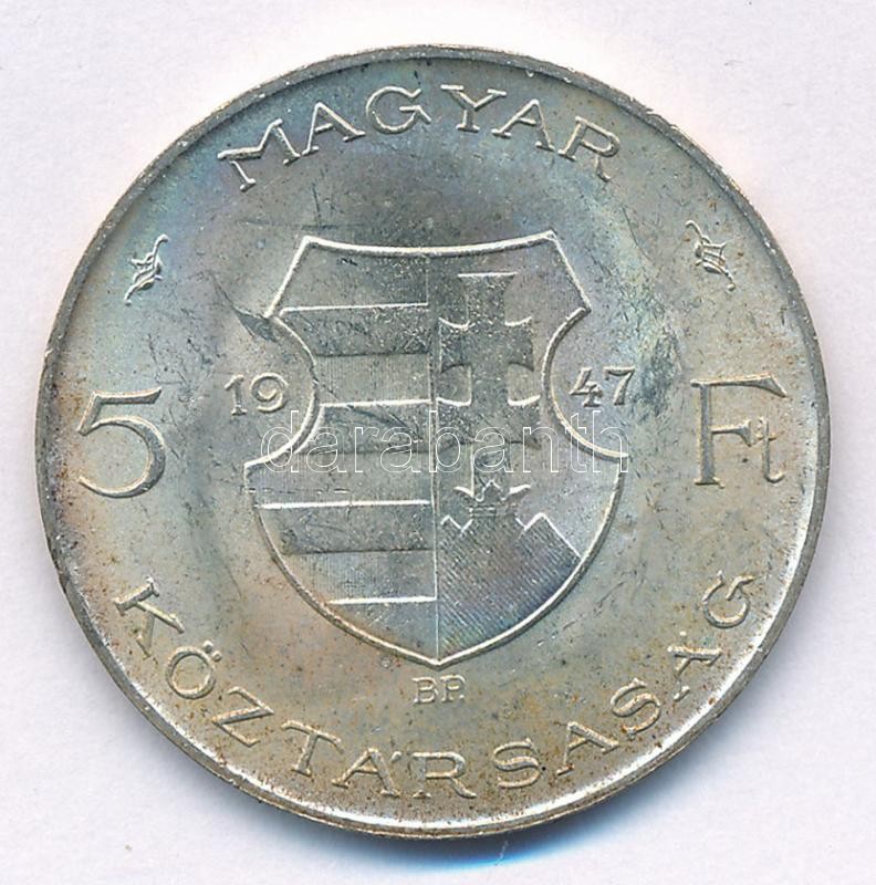 Leírás: 1947. 5Ft Ag "Kossuth" T:1- patina Adamo F8.1