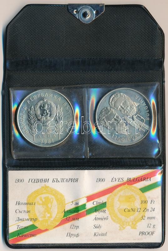 Leírás: 1981. 100Ft Cu-Ni-Zn + 5L Cu-Ni-Zn "Bulgária 1300 éves" bolgár-magyar közös kiadás, eredeti tokban, tanúsítvánnyal T:PP