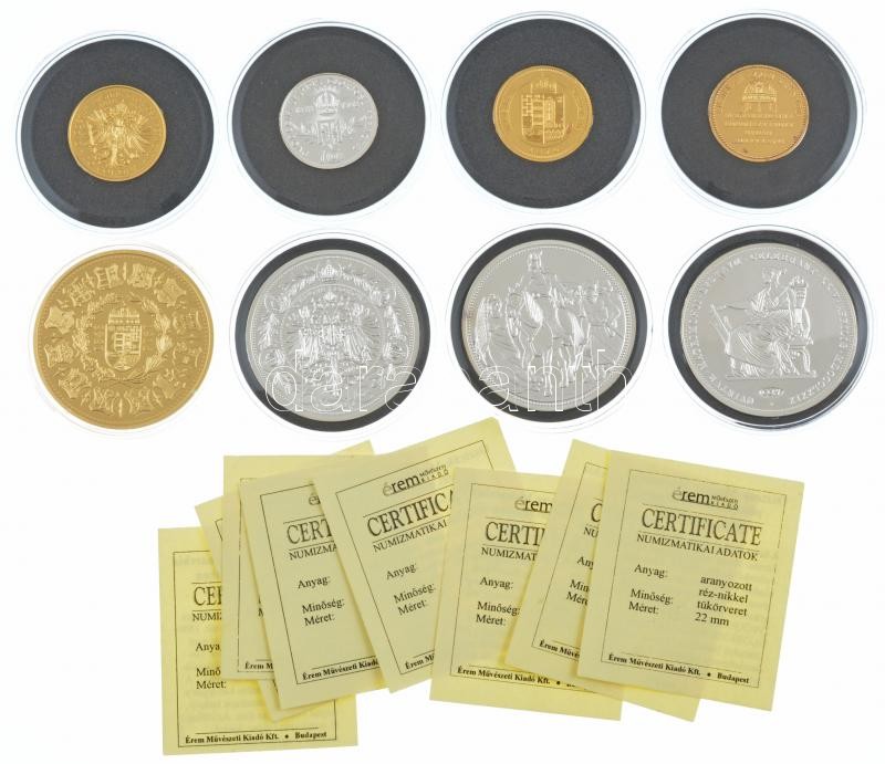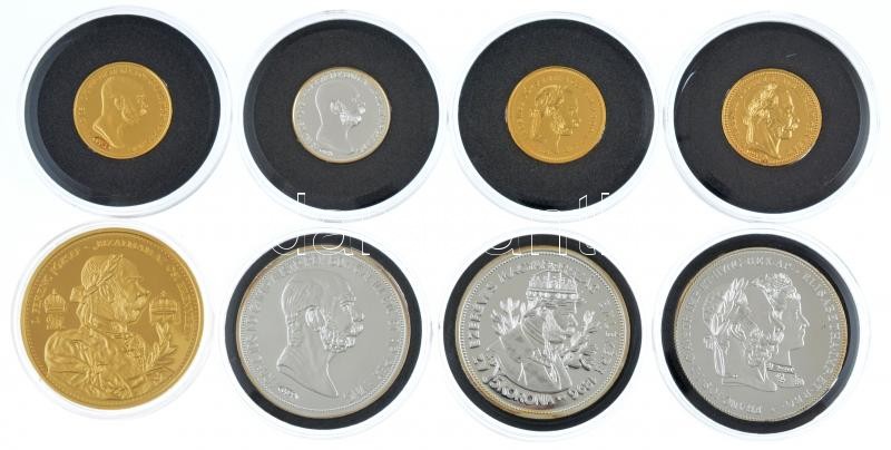 Leírás: DN "Osztrák-Magyar Monarchia pénzei utánveretben" aranyozott/ezüstözött Cu-Ni (8xklf) mind kapszulában, tanúsítvánnyal T:PP
