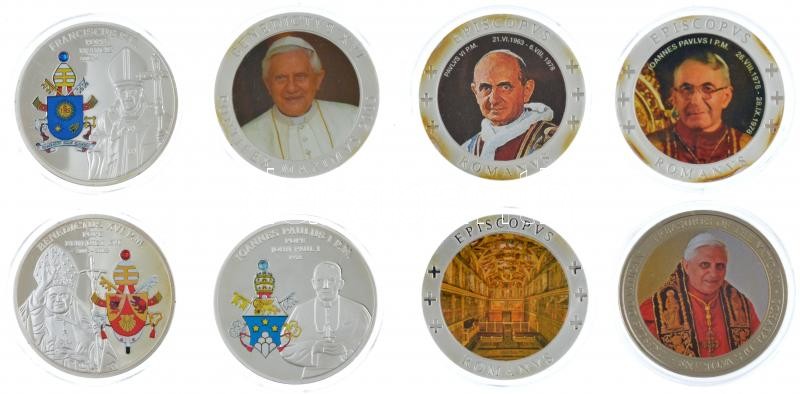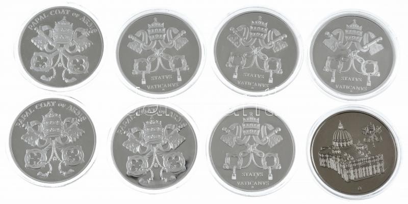 Leírás: Vatikán ~2015. "Pápák" 8db-os kétoldalas, ezüstözött fém emlékérem-tétel T:PP patina