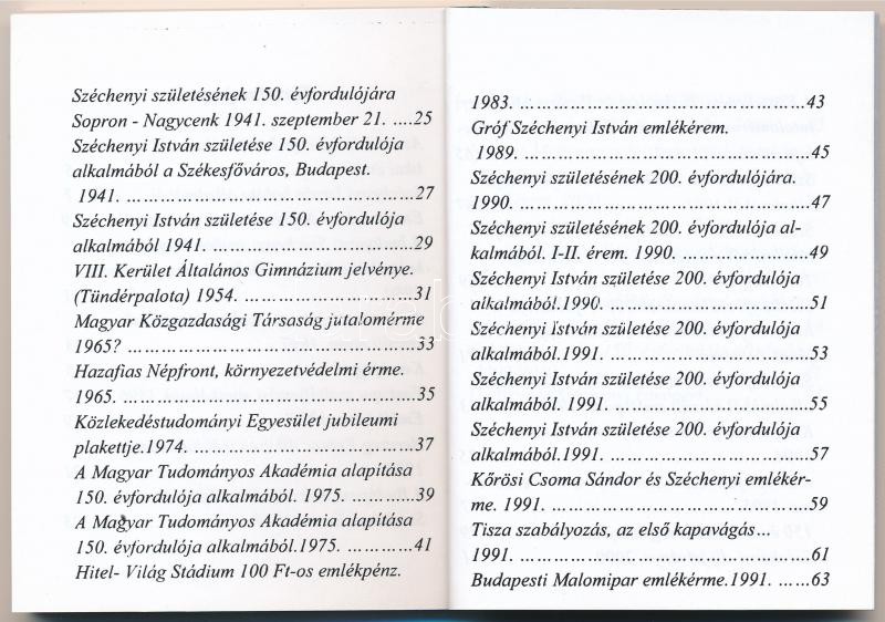Leírás: Egervölgyi Dezső: "Fémbezárt emlékezés - Széchenyi István munkássága érmeken". Pápa, 2010. Újszerű állapotban