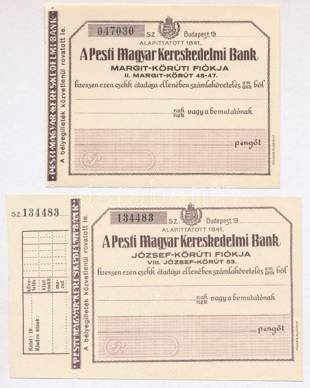 ~1920-1940. "A Pesti Magyar Kereskedelmi Bank" kitöltetlen c... https://www.darabanth.com/hu/423-Gyorsarveres/423.0/Numizmatika/Papir-es-fem-szuksegpenzek~6000006/7E1920-1940-A-Pesti-Magyar-Kereskedelmi-Bank-kitoltetlen-csekkje-4xklf-TI-I-az-egyiken-kis-sz~II2641947