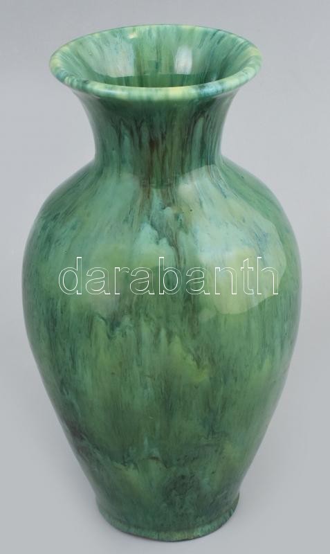 Leírás: Retró zöld mázas kerámia váza, jelzés nélkül, alján csorbával, m: 25 cm