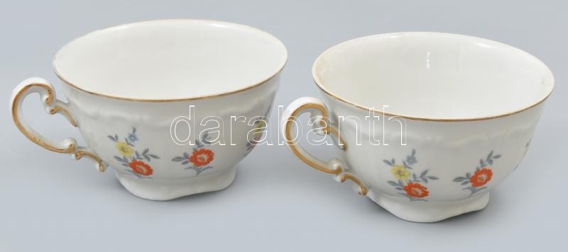 Leírás: Zsolnay porcelán teás készlet 6 személyes, egy csészealj hiánnyal. Matricás, jelzett, kopásokkal