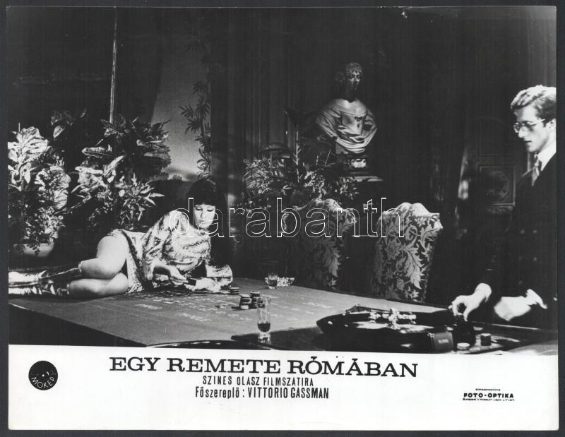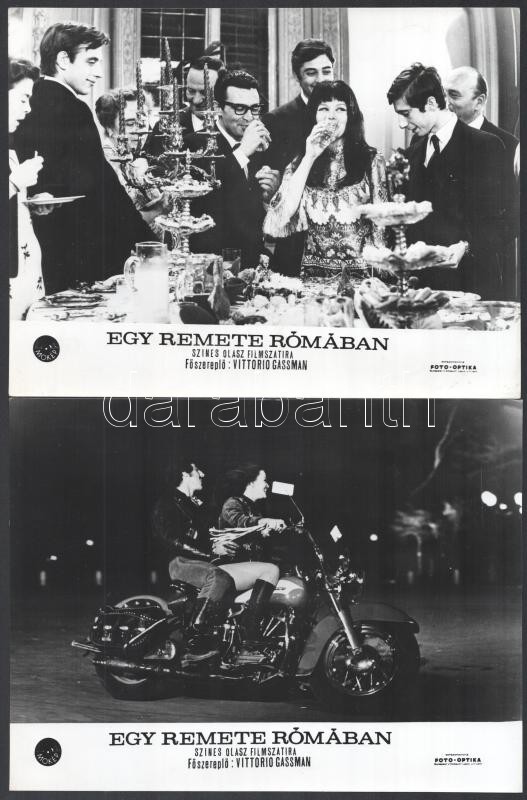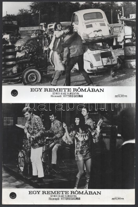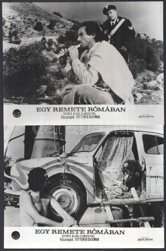 cca 1968 ,,Egy remete Rómában" című olasz filmszatíra jelenetei és szereplői, 9 db vintage produkciós filmfotó, ezüst zselatinos fotópapíron, a használatból eredő - esetleges - kisebb hibákkal, 18x24 cm