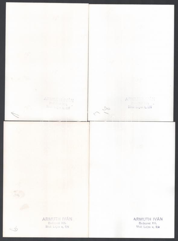 Leírás: cca 1970 Armuth Iván (1929-1992) 12 db divatfotója, a hátoldalak pecsétekkel jelzettek, 17x13 cm