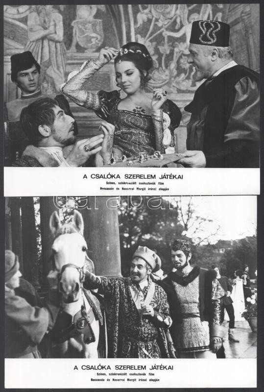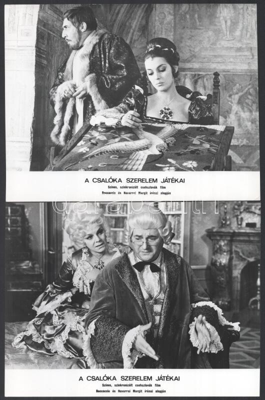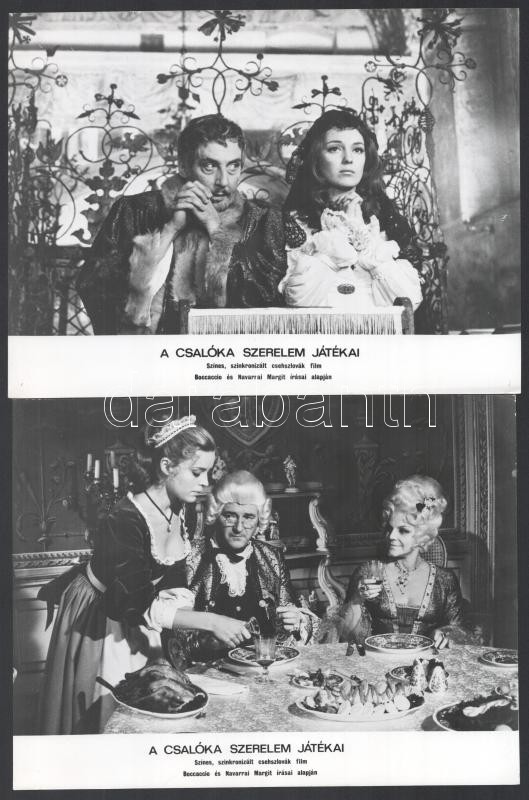 cca 1972 ,,A csalóka szerelem játékai" című csehszlovák film jelenetei és szereplői, 23 db vintage produkciós filmfotó, ezüst zselatinos fotópapíron, a használatból eredő - esetleges - kisebb hibákkal, 18x24 cm