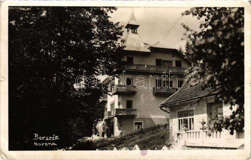 1942 Borszék, Borsec; Korona nyaraló. Heiter György eredeti felvétele ... https://www.darabanth.com/hu/424-Gyorsarveres/424.0/Kepeslapok/Erdely~1000006/1942-Borszek-Borsec-Korona-nyaralo-Heiter-Gyorgy-eredeti-felvetele-es-kiadasa-villa-kis-~II2699575