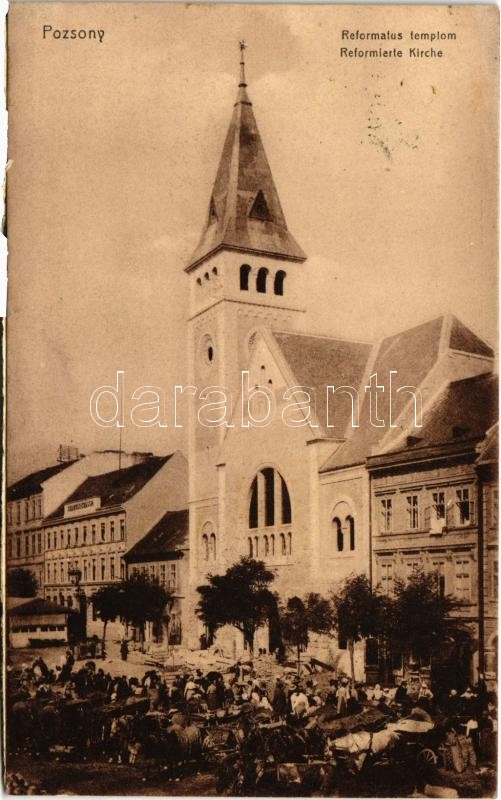 1914 Pozsony, Pressburg, Bratislava; Református templom, piac. G. Dusc... https://www.darabanth.com/hu/424-Gyorsarveres/424.0/Kepeslapok/Felvidek~1000007/1914-Pozsony-Pressburg-Bratislava-Reformatus-templom-piac-G-Duschinsky-Calvinist-church-ma~II2698724