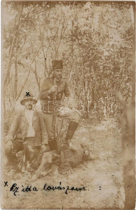 1915 Moraván, Moravany nad Váhom (Nyitra); vadász elejtett vaddisznóva... https://www.darabanth.com/hu/424-Gyorsarveres/424.0/Kepeslapok/Felvidek~1000007/1915-Moravan-Moravany-nad-Vahom-Nyitra-vadasz-elejtett-vaddisznoval-es-a-lovaszaval-hun~II2699631