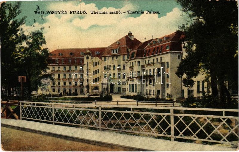 1917 Pöstyénfürdő, Kúpele Piestany; Thermia szálló. Schulcz Ignác kiad... https://www.darabanth.com/hu/424-Gyorsarveres/424.0/Kepeslapok/Felvidek~1000007/1917-Postyenfurdo-Kupele-Piestany-Thermia-szallo-Schulcz-Ignac-kiadasa-Palace-Hotel~II2698363
