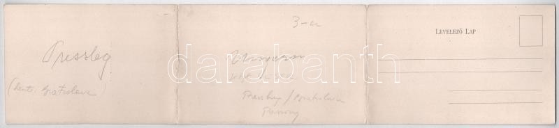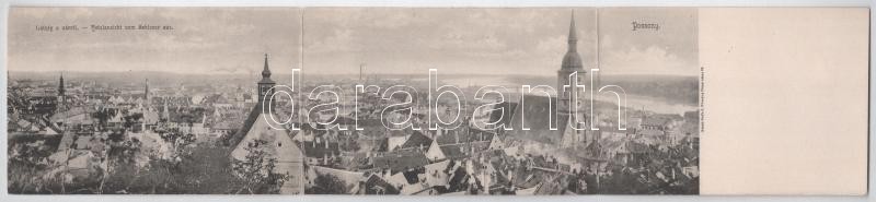Pozsony, Pressburg, Bratislava; Látkép a várról. Neffe J. kiadása, három részes kinyitható panorámalap / view from the castle. 3-tiled folding panoramacard