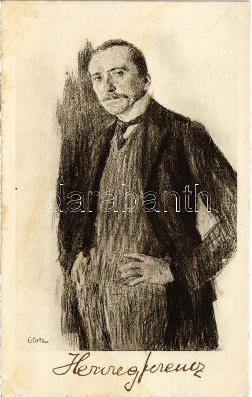 Leírás: Herczeg Ferenc magyar író, színműíró, újságíró, az MTA tagja és másodelnöke (álneve Katang) s: Glatz (EK)
