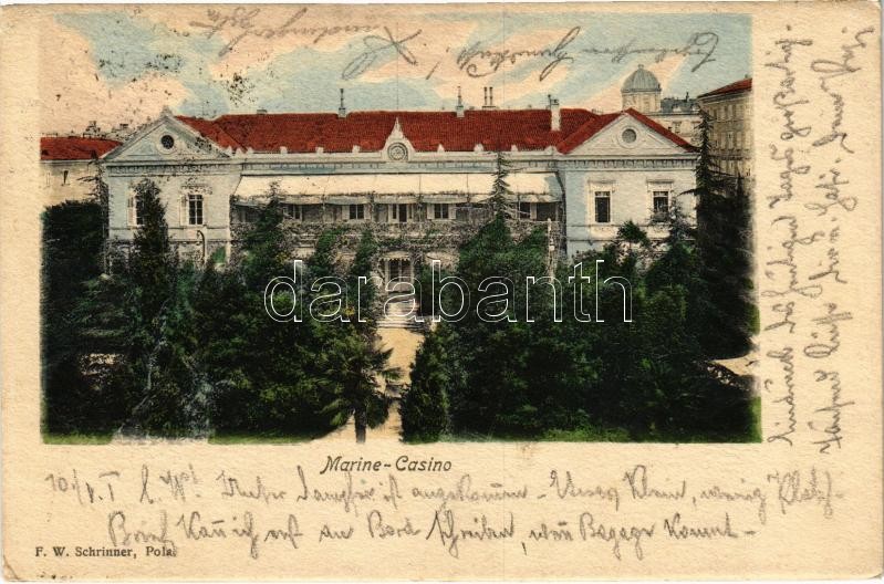 1901 Pola, Pula; K.u.K. Kriegsmarine Marine Kasino / Osztrák-magyar ha... https://www.darabanth.com/hu/424-Gyorsarveres/424.0/Kepeslapok/Horvatorszag~1000009/1901-Pola-Pula-KuK-Kriegsmarine-Marine-Kasino-Osztrak-magyar-haditengereszeti-kaszino-Au~II2695604