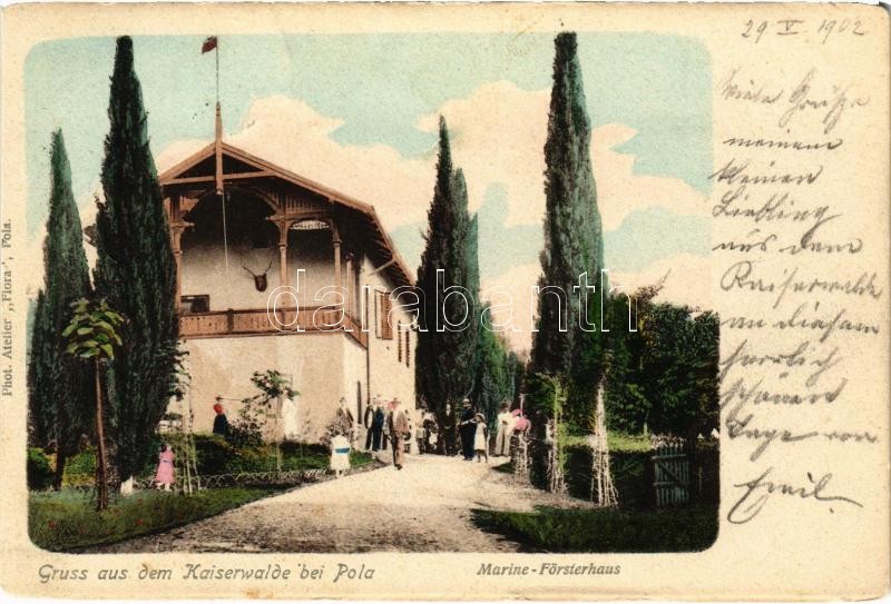 1902 Pola, Pula; Kaiserwald, K.u.k. Kriegsmarine Marine Försterhaus / ... https://www.darabanth.com/hu/424-Gyorsarveres/424.0/Kepeslapok/Horvatorszag~1000009/1902-Pola-Pula-Kaiserwald-Kuk-Kriegsmarine-Marine-Forsterhaus-Siana-Sijana-Forest-Austro~II2695153