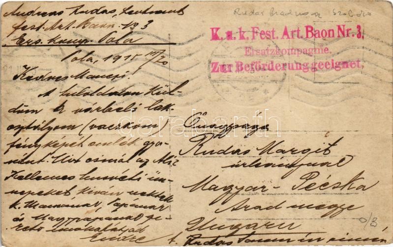 1915 Pola, Pula; Andreas Rudas hadnagy lakosztálya, belső / room of an Austro-Hungarian lieutenant, interior. photo + "K.u.K. Fest. Art. Baon Nr. 3. Ersatzkompagnie Zur Befördeung geeignet" (EK)