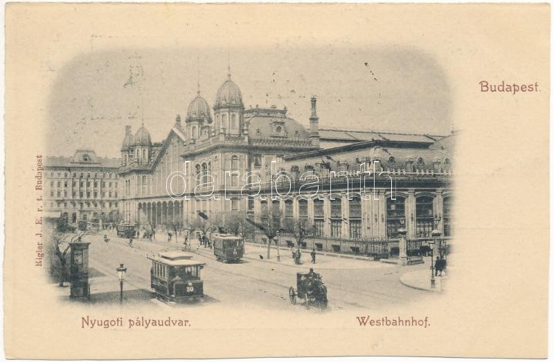 1901 Budapest VI. Nyugati pályaudvar, villamosok. Rigler J. E. rt. kia... https://www.darabanth.com/hu/424-Gyorsarveres/424.0/Kepeslapok/Magyarorszag~1000005/1901-Budapest-VI-Nyugati-palyaudvar-villamosok-Rigler-J-E-rt-kiadasa-Rb~II2701686