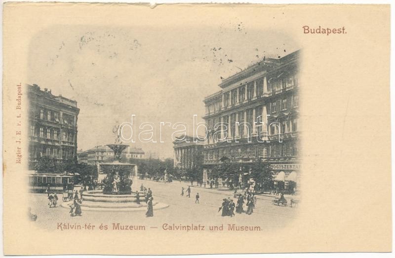 1901 Budapest VIII. Kálvin tér, Múzeum, gyógyszertár, szökőkút, villam... https://www.darabanth.com/hu/424-Gyorsarveres/424.0/Kepeslapok/Magyarorszag~1000005/1901-Budapest-VIII-Kalvin-ter-Muzeum-gyogyszertar-szokokut-villamos-Rigler-J-E-rt-k~II2701689