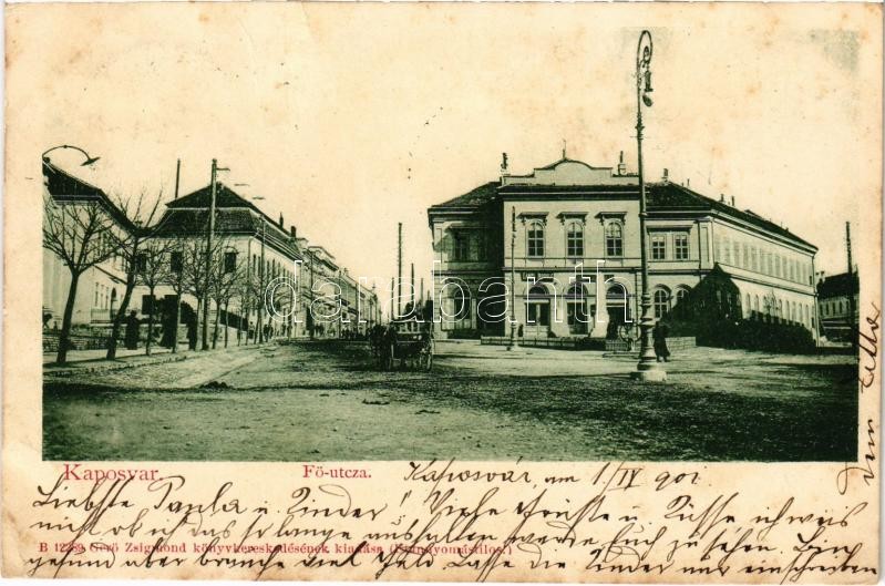 Leírás: 1901 Kaposvár, Fő utca, Lampl Rudolf és Hompola Emilia üzlete, könyvkereskedés. Gerő Zsigmond kiadása (Rb)