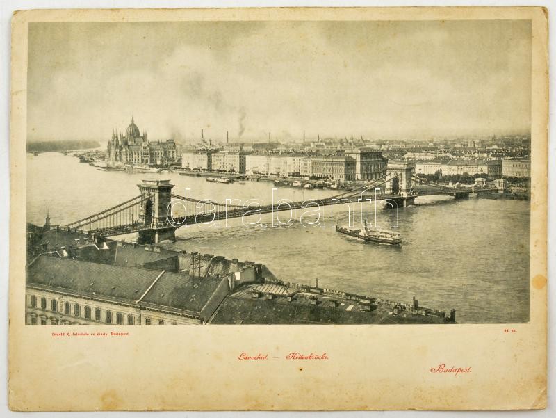 Leírás: Budapest, Lánchíd, Országház háttérben a gyárakkal. Divald K. felvétele és kiadv. 44. sz. - Óriás képeslap (33 x 25 cm) (EK)