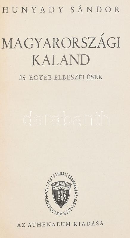 Hunyady Sándor: Magyarországi kaland és egyéb elbeszélések. Bp., 1942,... https://www.darabanth.com/hu/424-Gyorsarveres/424.0/Konyvek/Konyvek-Egyeb-ritkasagok~2000022/Hunyady-Sandor-Magyarorszagi-kaland-es-egyeb-elbeszelesek-Bp-1942-Athenaeum-282plus1-p-K~II2696105