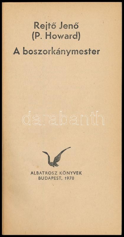 Leírás: Rejtő Jenő (P. Howard) 2 könyve: A Néma Revolverek Városa; A boszorkánymester. Bp., 1969-1970, Albatrosz Könyvek. Kiadói papírkötés, kissé viseltes borítóval.