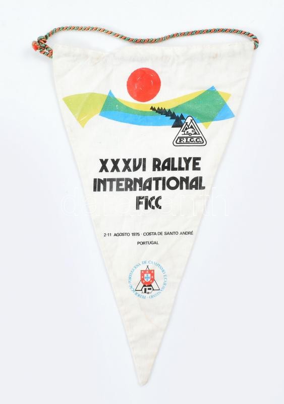 Leírás: 1975 "XXXVI Rallye International FICC,2-11 Agosto 1975, Costa de Santo André Portugal" zászló, 28x17 cm