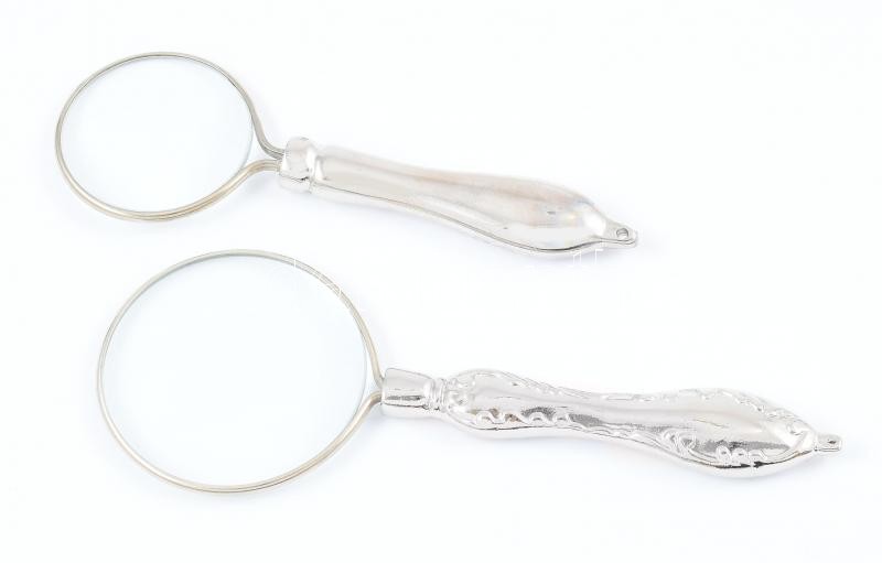 Leírás: 2 db fémnyelű nagyító, h: 9 - 11 cm