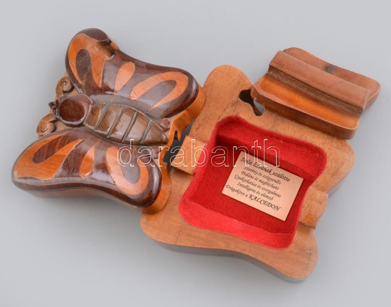Pillangó formájú érdekes nyitódású intarziás fa doboz 11x10 cm https://www.darabanth.com/hu/424-Gyorsarveres/424.0/Mutargy-papirregiseg-egyeb/Bolhapiac~500012/Pillango-formaju-erdekes-nyitodasu-intarzias-fa-doboz-11x10-cm~II2699713