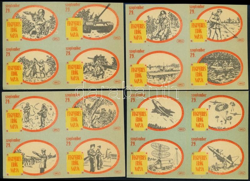 Leírás: cca 1960-1980 Fegyveres erők napja, 4x4 db gyufacímke, 10x7,5 cm