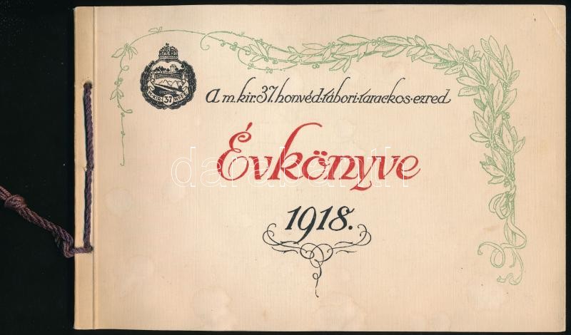 1918. A M. Kir. 37. Honvéd Tábori Tarackos Ezred évkönyve 1918. Összeállította és Beniczek József ezredesnek, az első ezredparancsnoknak, szeretettel ajánlja az ezred tisztikara. Bp., Hornyánszky V.-ny., 77 p. Szövegközti fekete-fehér fotóanyaggal illusztrált. Naptárral, hősi halottak. Kiadói zsinórfűzött haránt-alakú papírkötés.