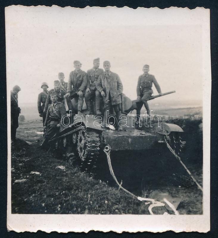 cca 1940-1945 Katonák tank tetején, fotó, 6,5×5,5 cm https://www.darabanth.com/hu/424-Gyorsarveres/424.0/Mutargy-papirregiseg-egyeb/Militaria~500029/cca-1940-1945-Katonak-tank-tetejen-foto-6-5C3975-5-cm~II2698760