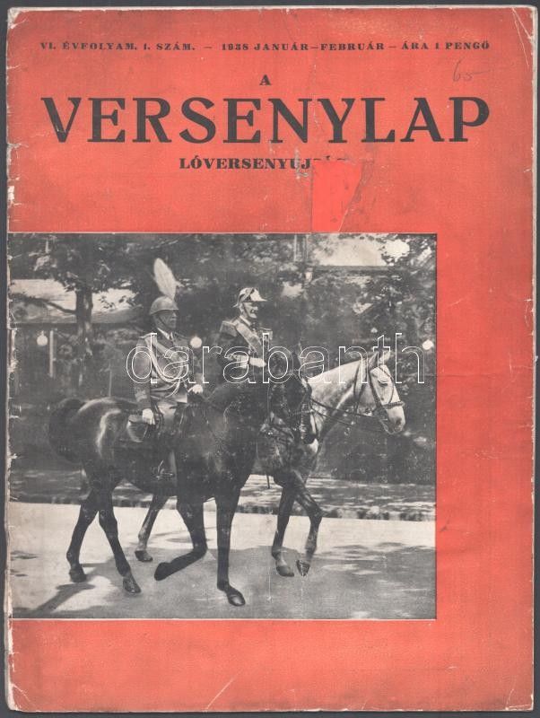1938 A Versenylap lóversenyújság VI. évf. 1. száma, 1938. január-február, fekete-fehér fotókkal illusztrált, a címlapon Horthy Miklós és III. Viktor Emánuel olasz király, 40 p., viseltes, szétvált borítóval