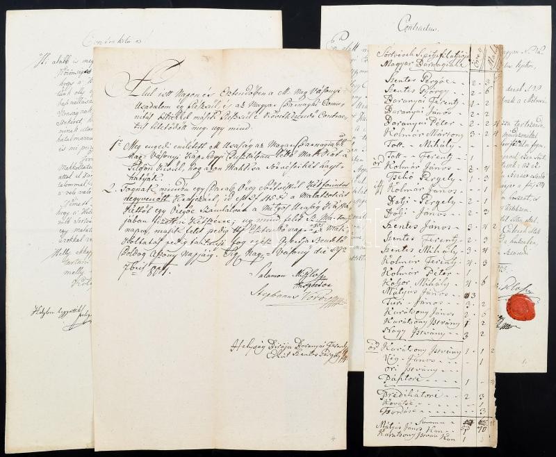 Leírás: 1803-1840 Barnag, Nagyvázsony, Ajka, magyar nyelvű szerződések, 5 db okmány